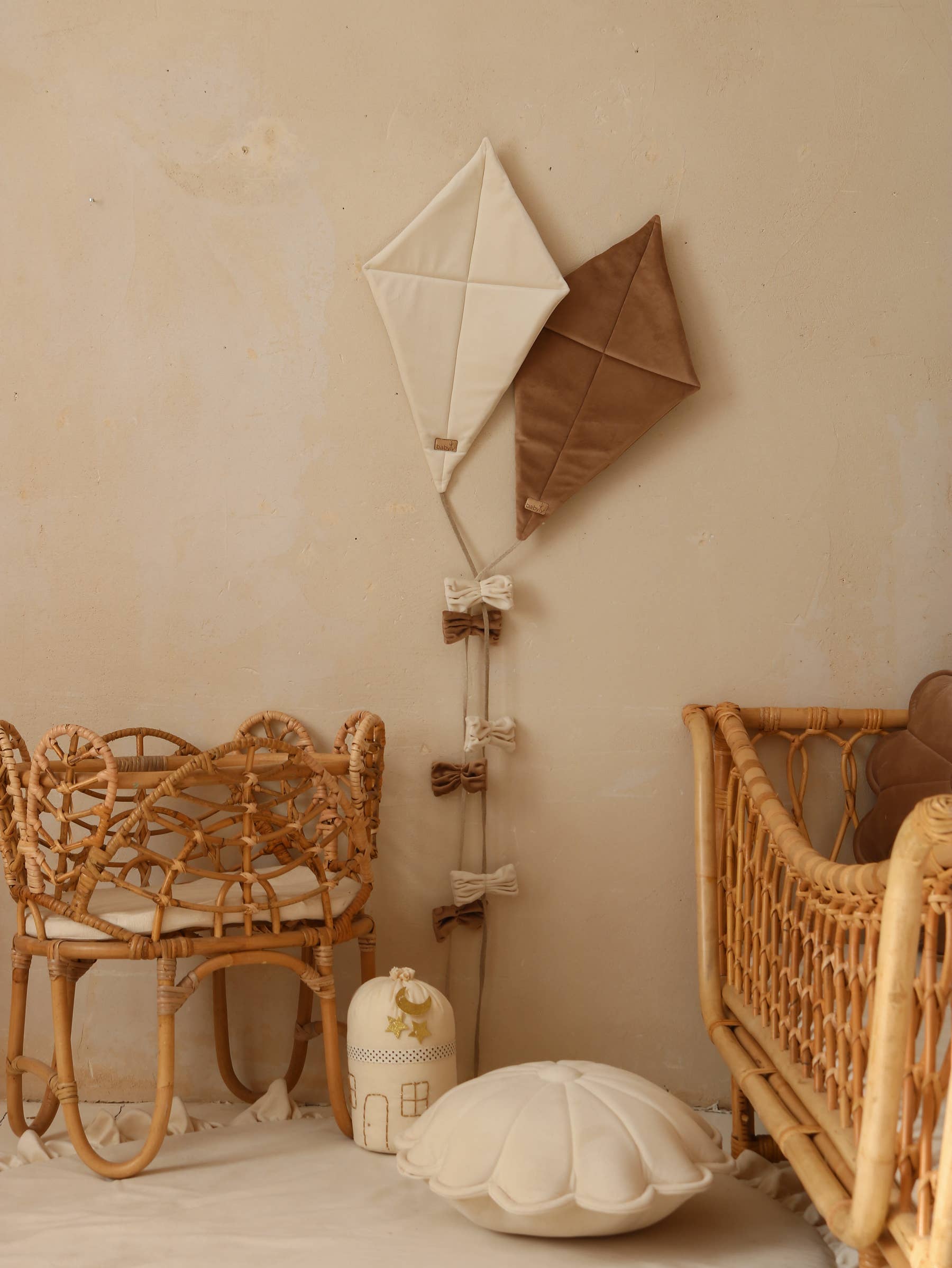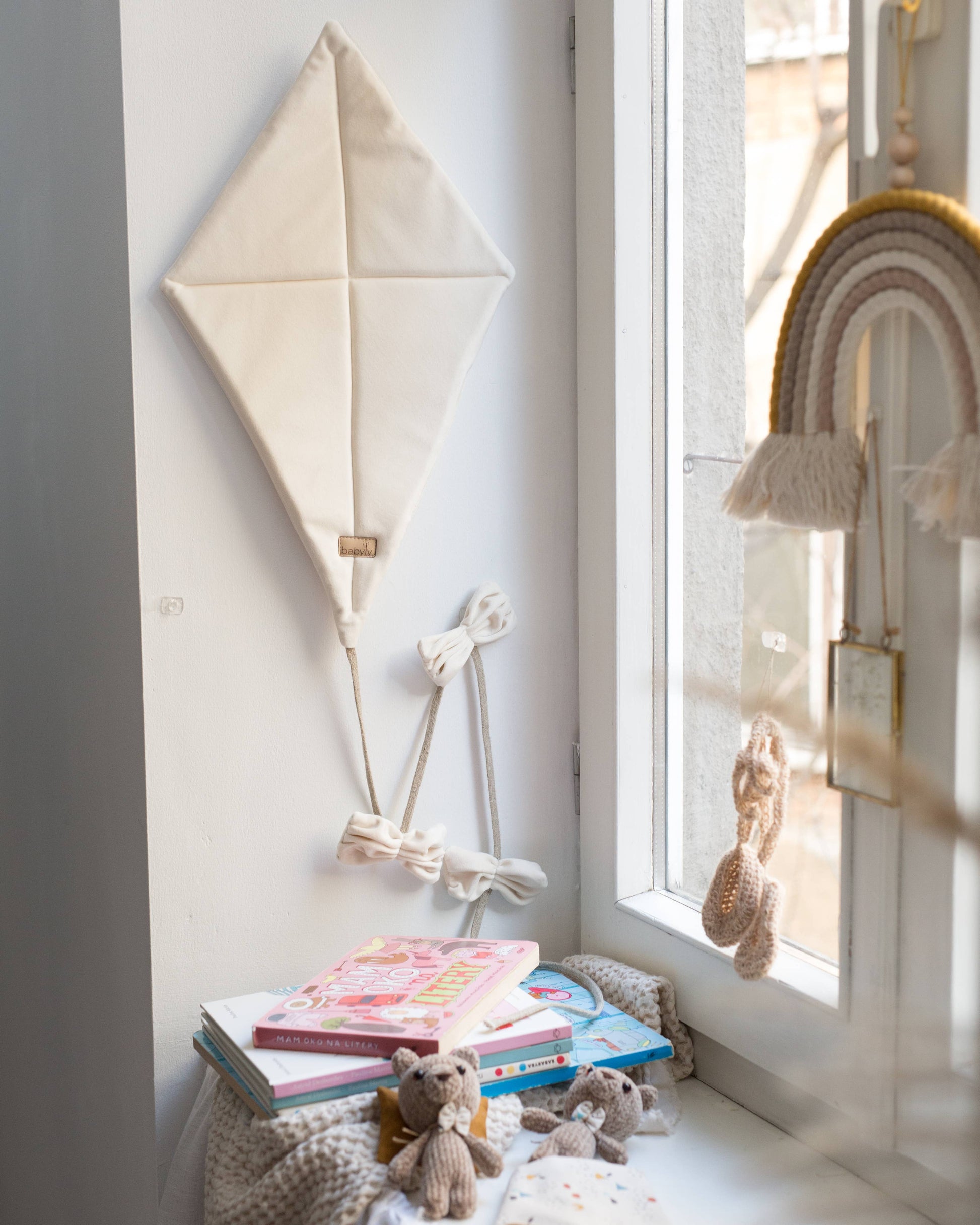 Un cerf-volant en velours. Parfait comme élément décoratif d'une chambre d'enfant. Grâce à la disponibilité de plusieurs variantes de couleurs, vous pouvez choisir une couleur de cerf-volant ou créer une belle composition qui décorera et réchauffera la chambre de l'enfant, évoquant de joyeux souvenirs de jeux familiaux et stimulant l'imagination des plus jeunes. Les cerfs-volants sont dotés de 3 crochets, grâce auxquels ils peuvent être accrochés au mur ou au plafond. La queue suspendue lui donnera légèreté et insouciance enfantine.