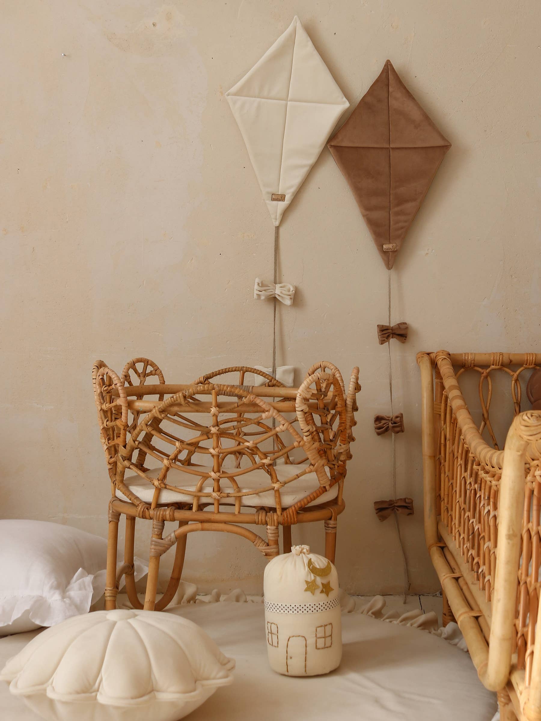 Un cerf-volant en velours. Parfait comme élément décoratif d'une chambre d'enfant. Grâce à la disponibilité de plusieurs variantes de couleurs, vous pouvez choisir une couleur de cerf-volant ou créer une belle composition qui décorera et réchauffera la chambre de l'enfant, évoquant de joyeux souvenirs de jeux familiaux et stimulant l'imagination des plus jeunes.