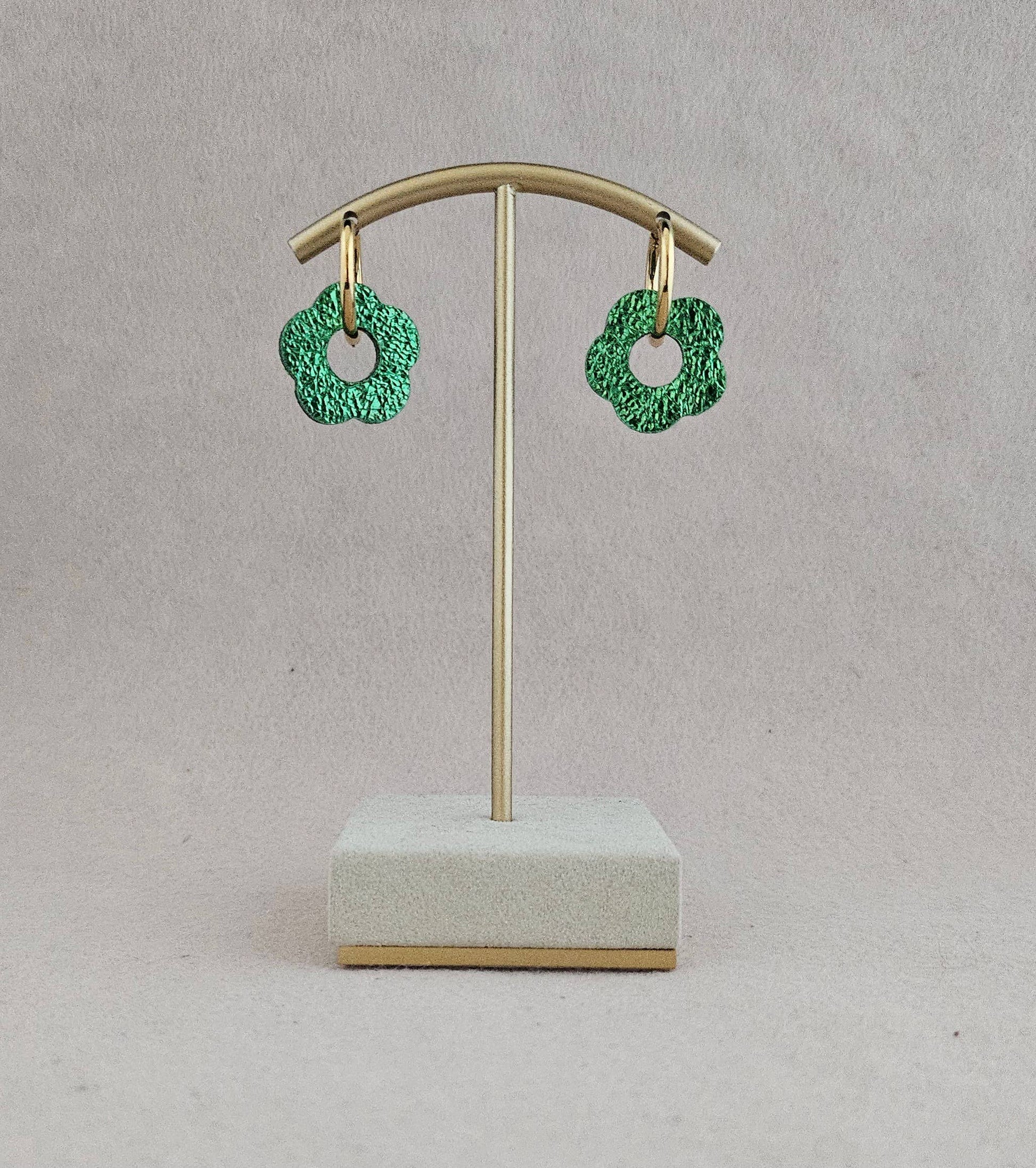 - Créoles en acier inoxydable et fleur en cuir upcyclé