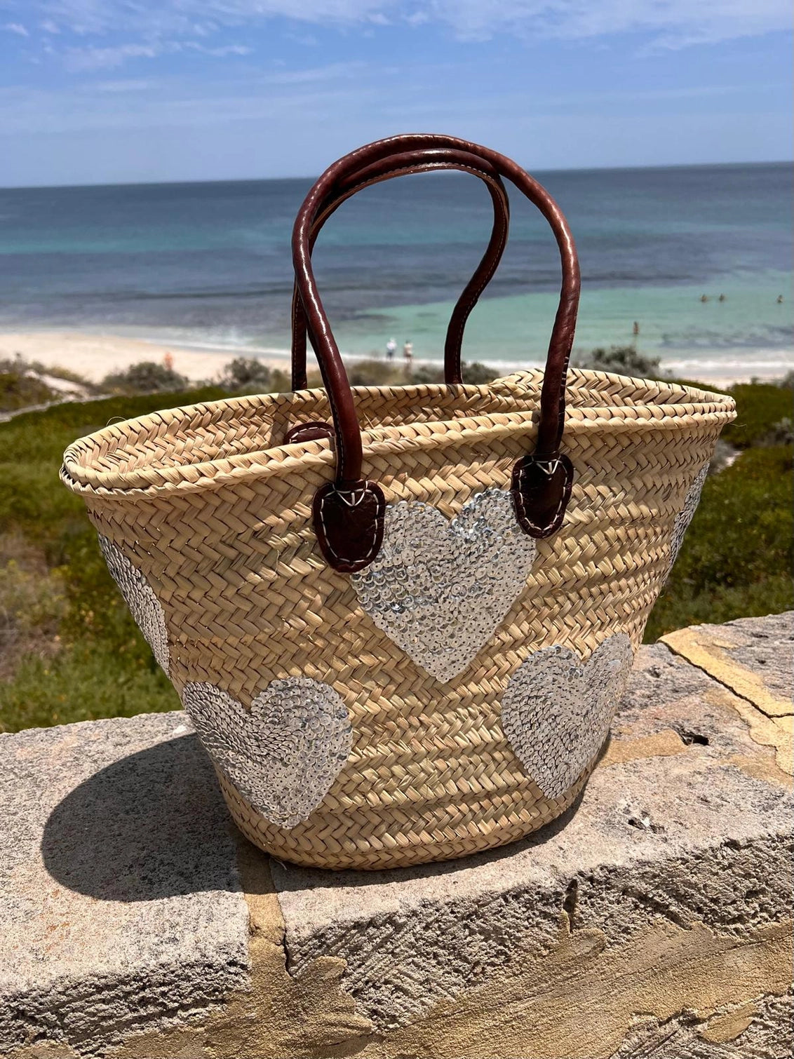 Sac tissé à la main à partir de feuilles de palmier naturelles et d'une poignée en cuir véritable