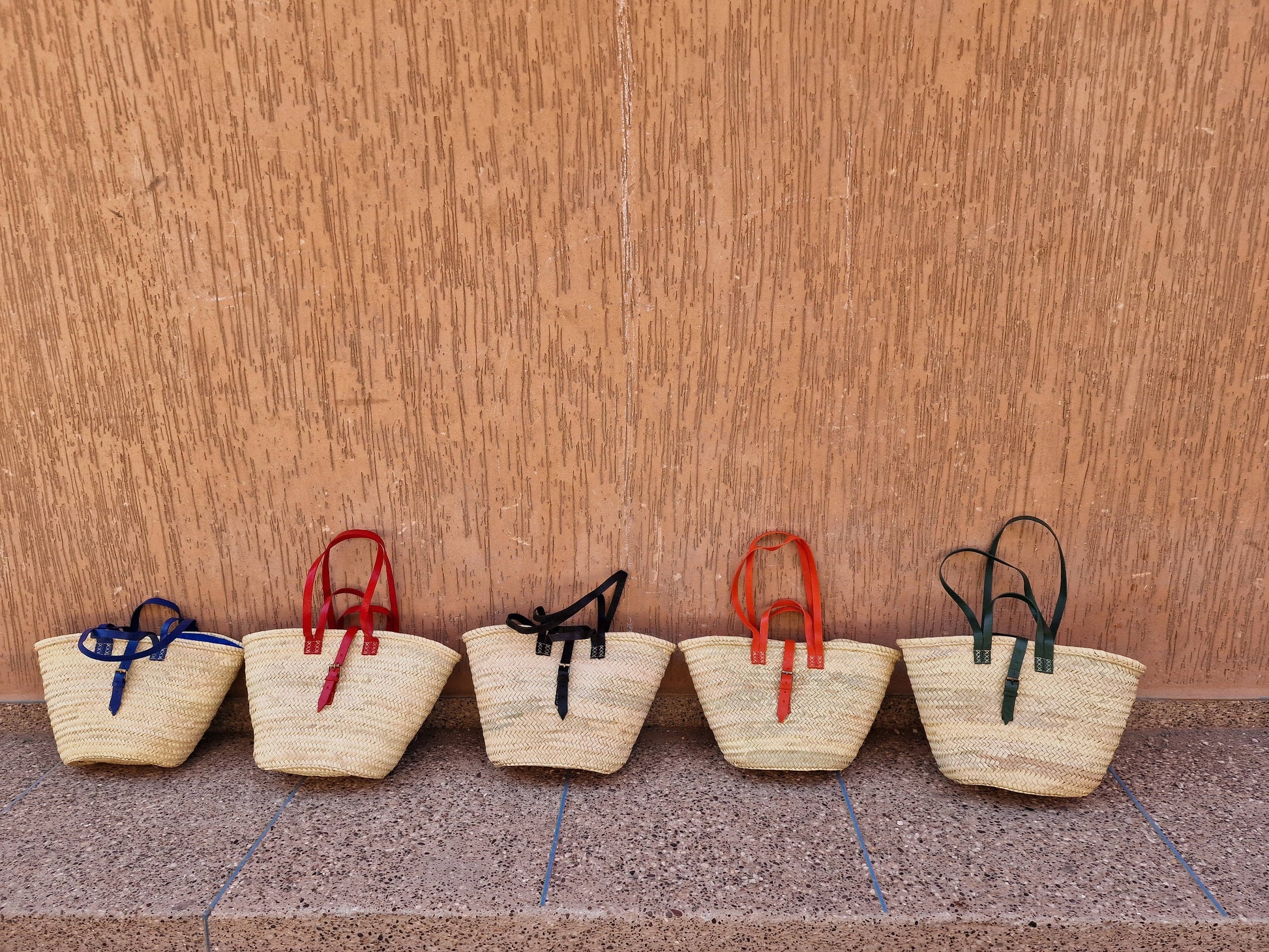 Panier français fait main avec poignée en cuir, sac fourre-tout en paille