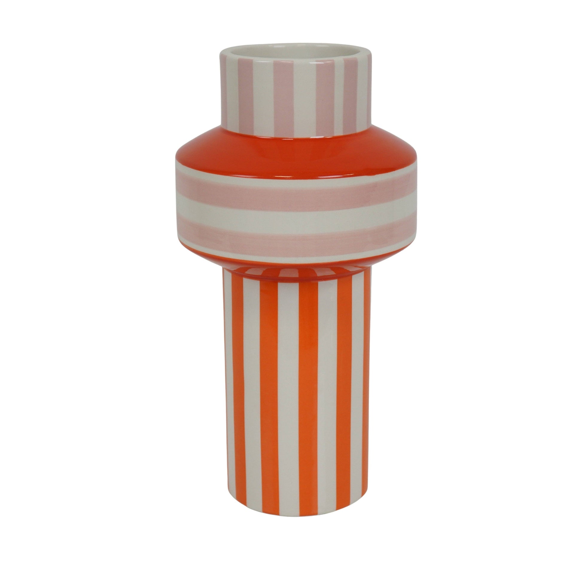 Vase à rayures en céramique, orange/rose clair, 13 x 13 x 25 cm